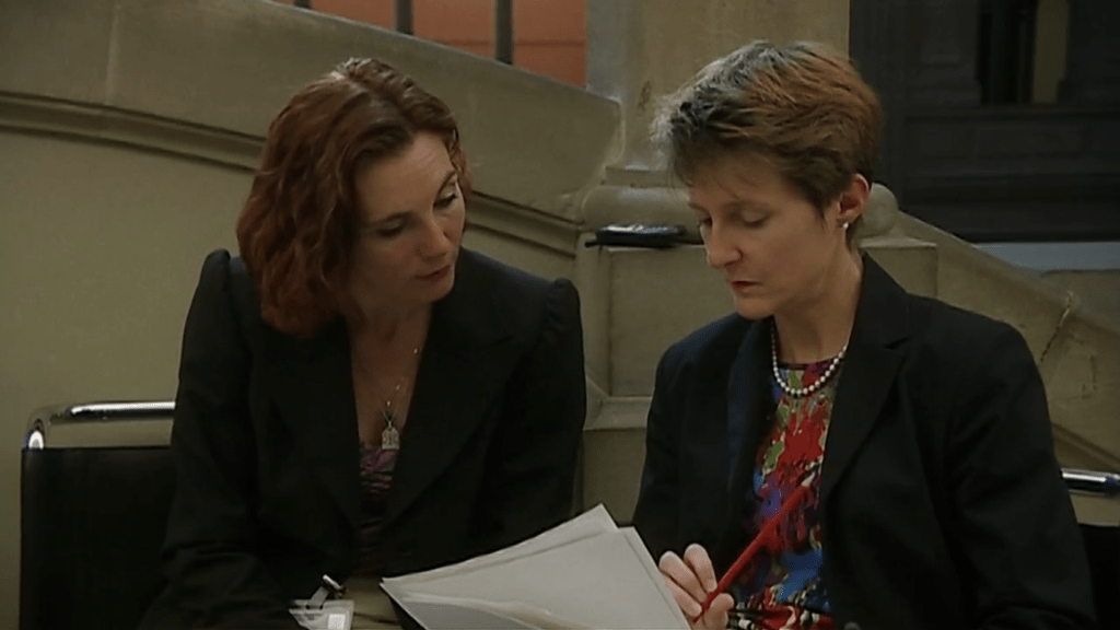 Because there are so few scenes shot outside the Bundeshaus, there are very few visual clues that this is a different era to 2021. Okay, Hannes’ habit of chain-smoking indoors raises a smile, and occasionally a young version of current Federal Councillor Simonetta Sommaruga come into shot, pulling strings: