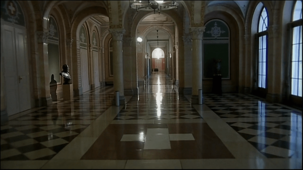 We witness absurdly private conversations in that corridor. It could be Maya conspiring with a Socialist Party bigwig to manipulate Sepp; or Sepp and Hannes in a status war, laughing together in the locker-room style as they murder each other with their eyes.