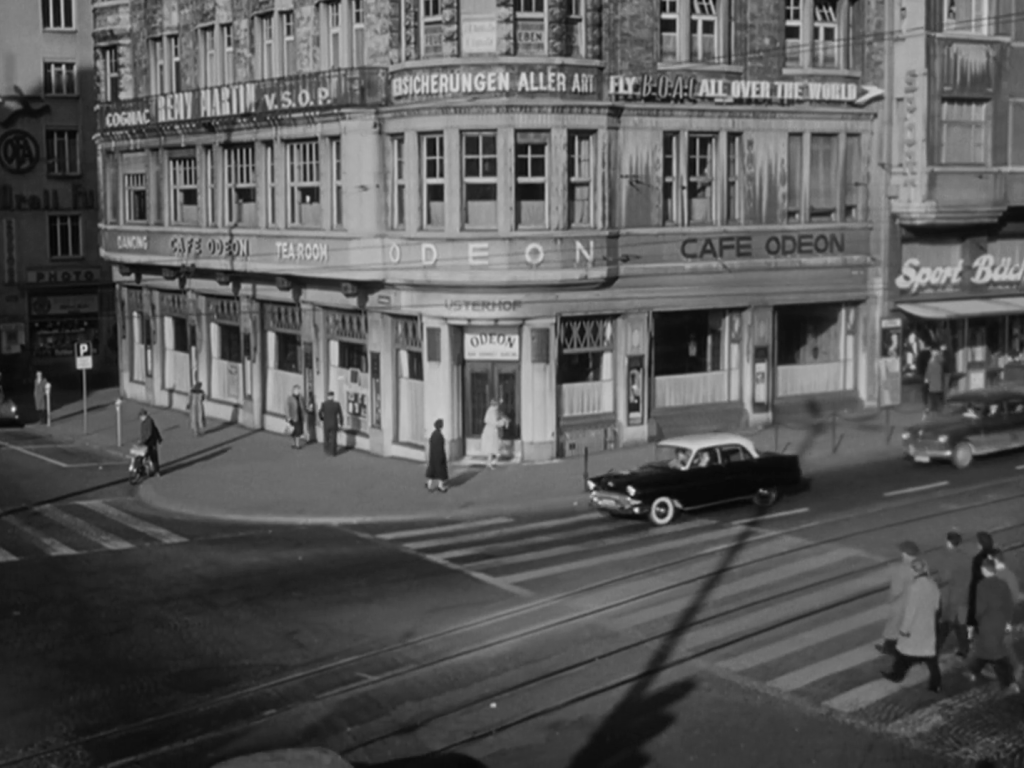 Apparently Früh was a frequent guest at the Odeon, and the film was a kind of love letter to the scene. As in Bäckerei Zürrer, he lets his actors fill the space with humanity and tolerance for all walks of life. It will be a pleasure to walk by the café again later this week, and remember that space.