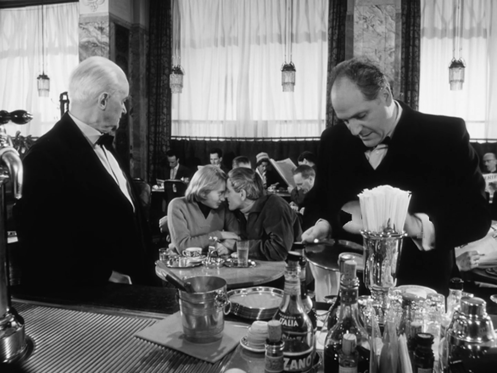 Like the Langstrasse milieu in his earlier Bäckerei Zürrer, Kurt Früh gives the main location a starring role. All sorts of colourful characters populate the café: a depressed grammar school teacher whose manuscript just got rejected; a passionate artist who gives up the booze for every two week love affair; a Hungarian opera singer constantly asking for money to cover his bills “before the next big show”. Keeping tabs on them all is the ageing head waiter. played by Emil Hegetschweiler. He begins the movie as the neutral observer, but can’t help getting more involved as Leni’s cluelessness triggers his paternal side.
