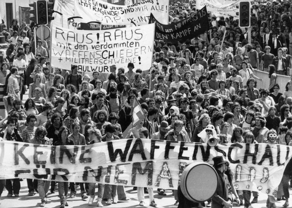 Bullshit. Take, for example, the case of Sulzer in 1980, when it sold nuclear power parts to the Argentinian military junta. Protests in Winterthur were small but noisy. But they escalated in 1981 at the “Waffenschau”, an exhibition of modern weapons at the Eulachhalle. Thousands took the streets, made a “human carpet” in protest, and things got violent.